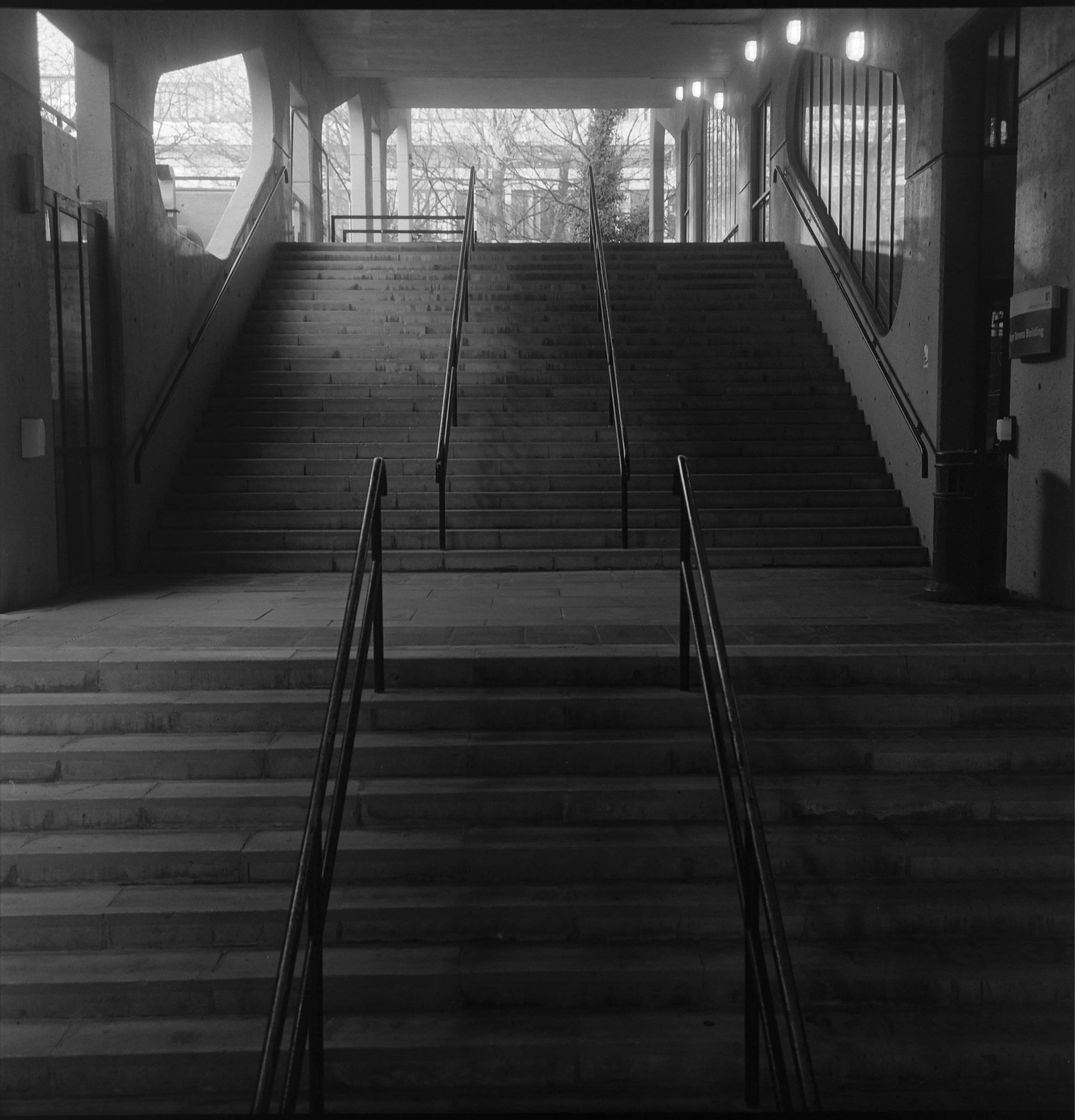 That’s not to say I’m not always trying to get a better photograph, or that it doesn’t make me happy to be there, doing my thing. I am, and it does. But there’s something else that keeps pulling me back to that specific spot. Many of you will be familiar with my love of the brutalist architecture at the University, and in particular of my affection for the Roger Stevens Building in particular, but it’s this rather unassuming staircase that really draws me in.